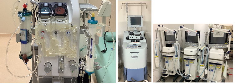 腹水濾過再濃縮装置の操作、血液成分分離装置の操作(末梢血幹細胞採取・骨髄濃縮・リンパ球輸注)、ラジオ波凝固療法の立ち合い等を行っています。HCUにおいては、人工呼吸器のラウンド点検・設定管理・終業点検・定期点検、CHDF・エンドトキシン吸着療法・血漿交換の対応等を行っています。